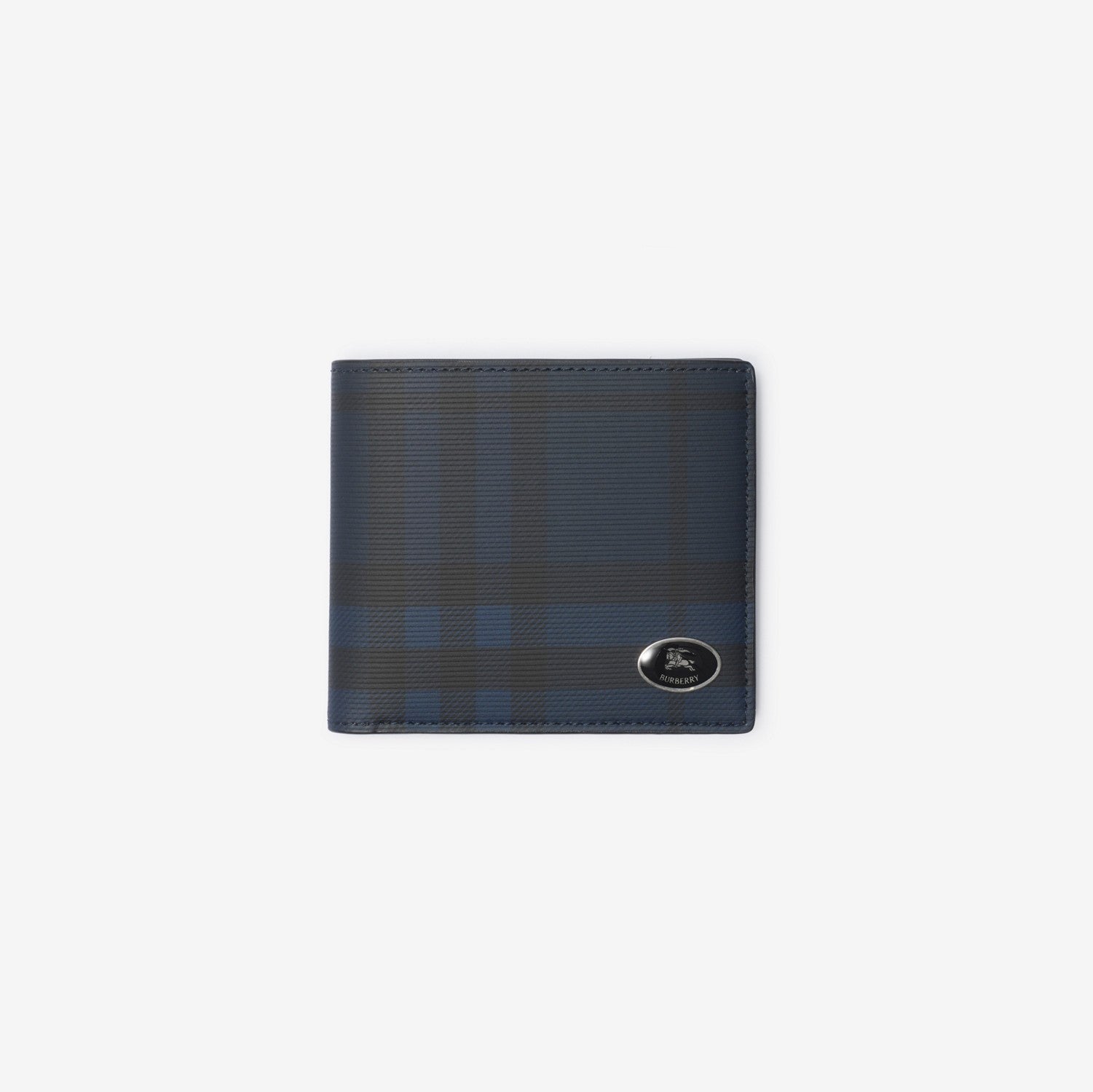 A bifold coin wallet in a cotton blend, printed with a seasonal Burberry Check. The design is lined with leather and finished with an enamelled Knight stamp, an archival motif first seen on Burberry bags in the 1980s. Sized to fit all currencies.