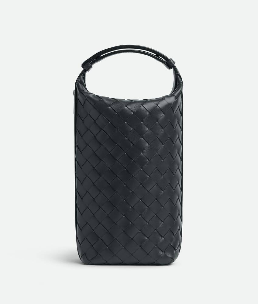 Intrecciato calfskin leather pouch with adjustable handle.