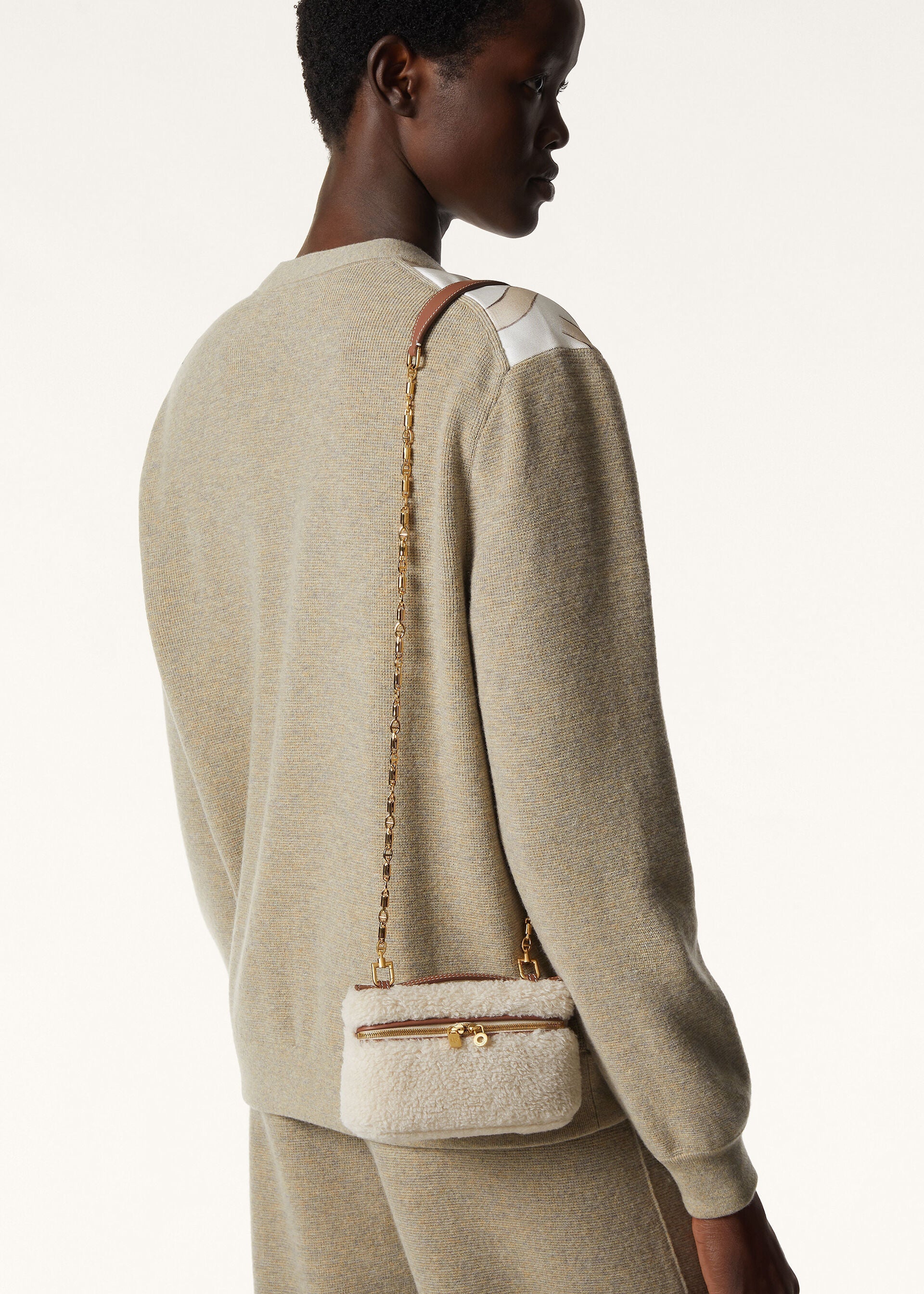 Versatile and endlessly refined, the Extra Pocket is a quintessential Loro Piana pouch with timeless charm. Here interpreted in a mini size, it is crafted from exclusive Cashfur® with touches of silk for a sophisticated feel. The petite accessory can be carried crossbody or in hand, with the chain strap removed.