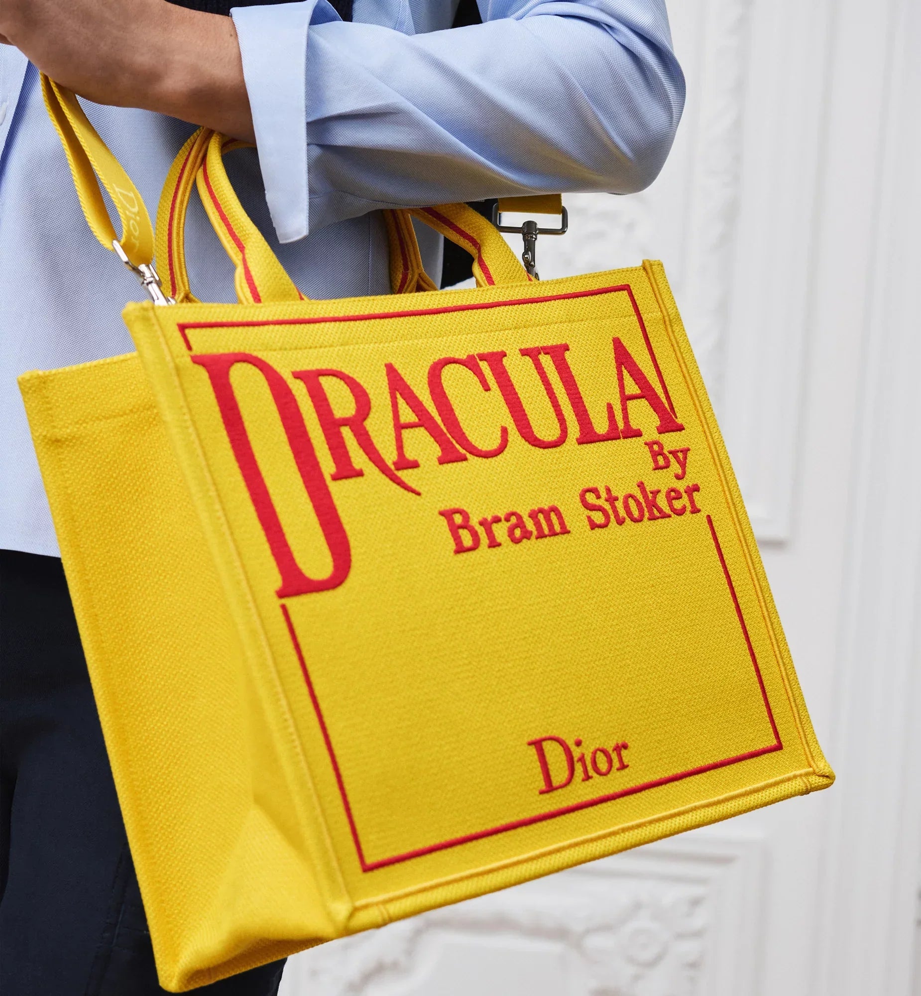 The hallmark Dior Book Tote takes its place in Jonathan Anderson’s dream library, showcasing a first edition cover of Dracula, by Bram Stokerâ„¢. The medium style offers a practical design that can be carried by hand, worn over the shoulder or crossbody.