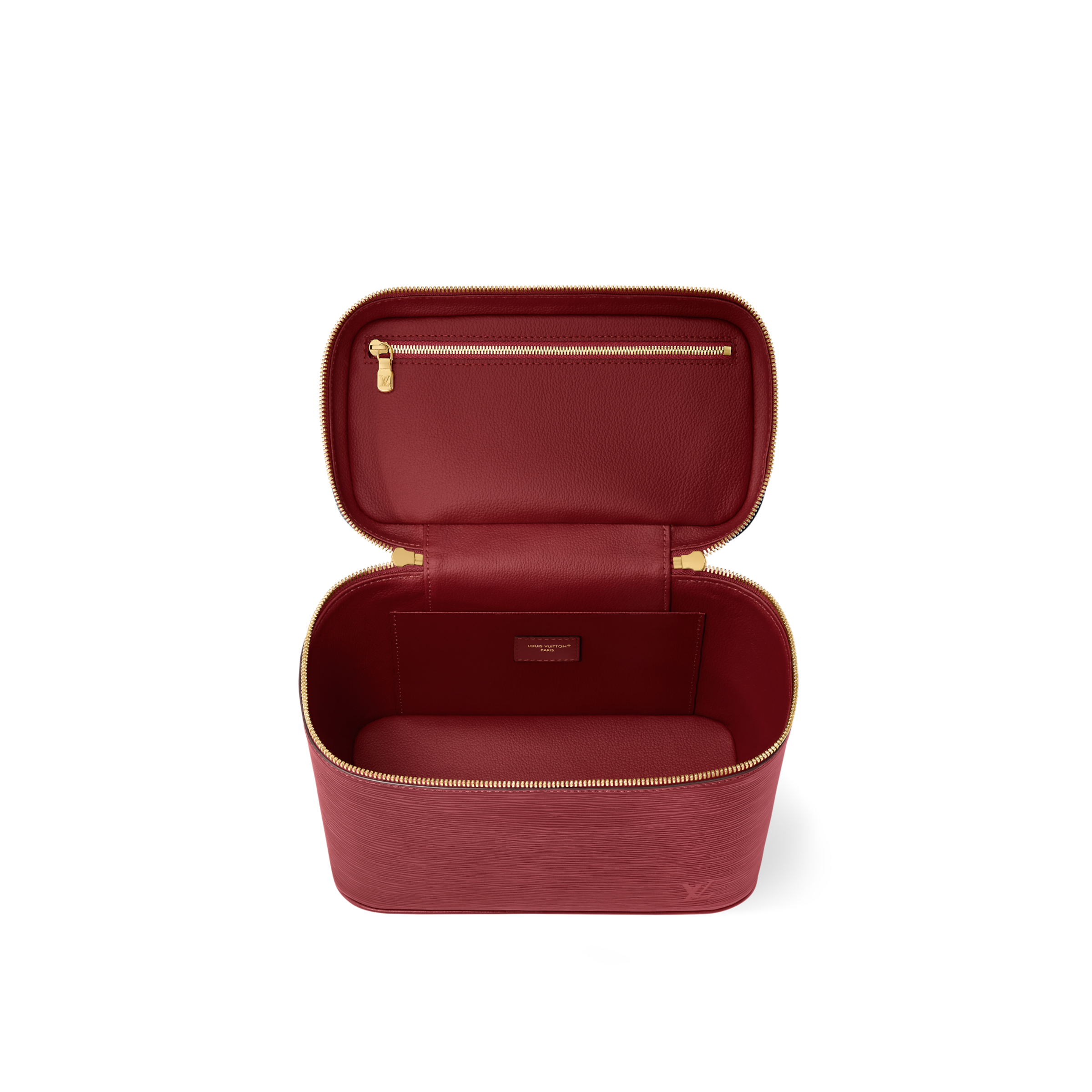 With a colour palette inspired by Louis Vuitton Beauty lipsticks, made from grained Epi leather, the Nice BB Vanity Case is perfectly sized to slip into a travel bag. Its supple structure features a flat-folding leather handle for space-saving convenience. The wide-opening top flap, secured by a double zip closure with LV-engraved pulls, reveals a washable textile lining in a matching colour.
