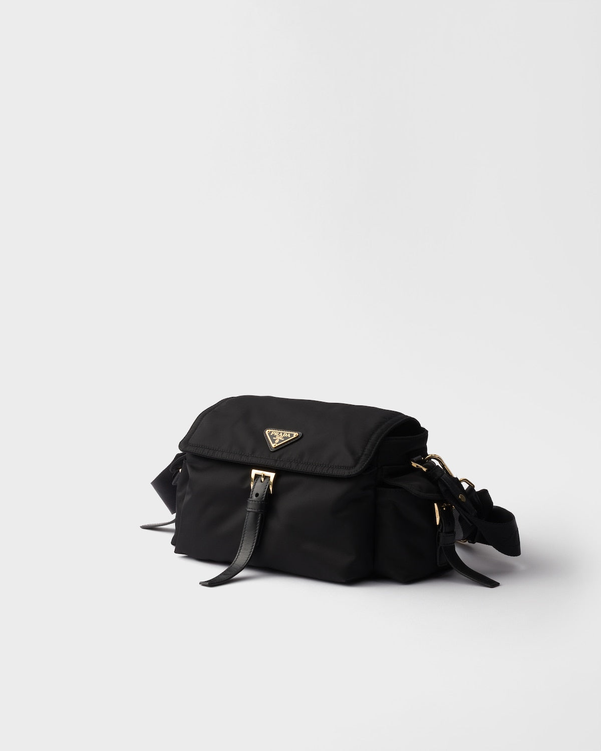 This bag, a perfect synthesis of refinement and functionality, is made of Re-Nylon with a soft silhouette and multiple pockets. The light, pragmatic design is defined by the combination of sporty and versatile elements with iconic and timeless touches. The accessory completed with leather details is decorated with the enameled metal triangle logo.