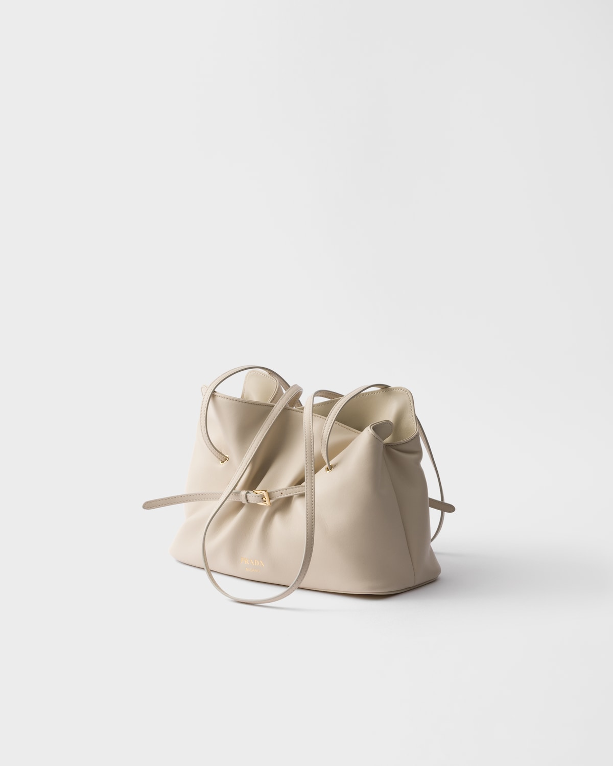 The Dada bag embodies natural and authentic elegance balancing form and function. A narrow belt shapes the volume of the nappa leather accessory, creating soft folds and tucks. The light, feminine construction is completed by long handles that suggest a practical and refined gesture.