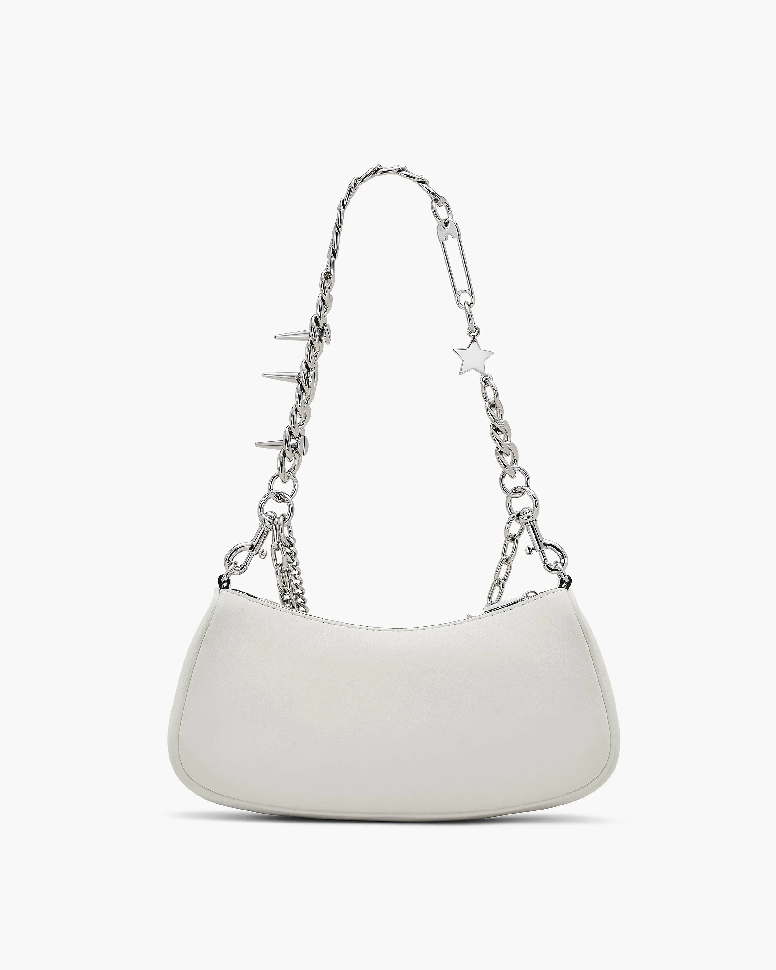 Stylishly playful and perpetually youthful, the Star Charm Shoulder Bag exudes Marc’s unmistakable spirit with a novel silhouette designed for comfortable over-the-shoulder styling. Crafted in smooth leather, this handbag features one removable leather shoulder strap, and a charm-adorned multi-layered chain strap, which can be attached for elevated over-the-shoulder styling, or as draping decorative accent.
